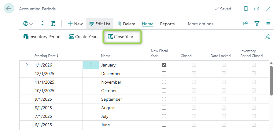 Once your entries are complete, you are ready to close the year administratively inside Business Central.